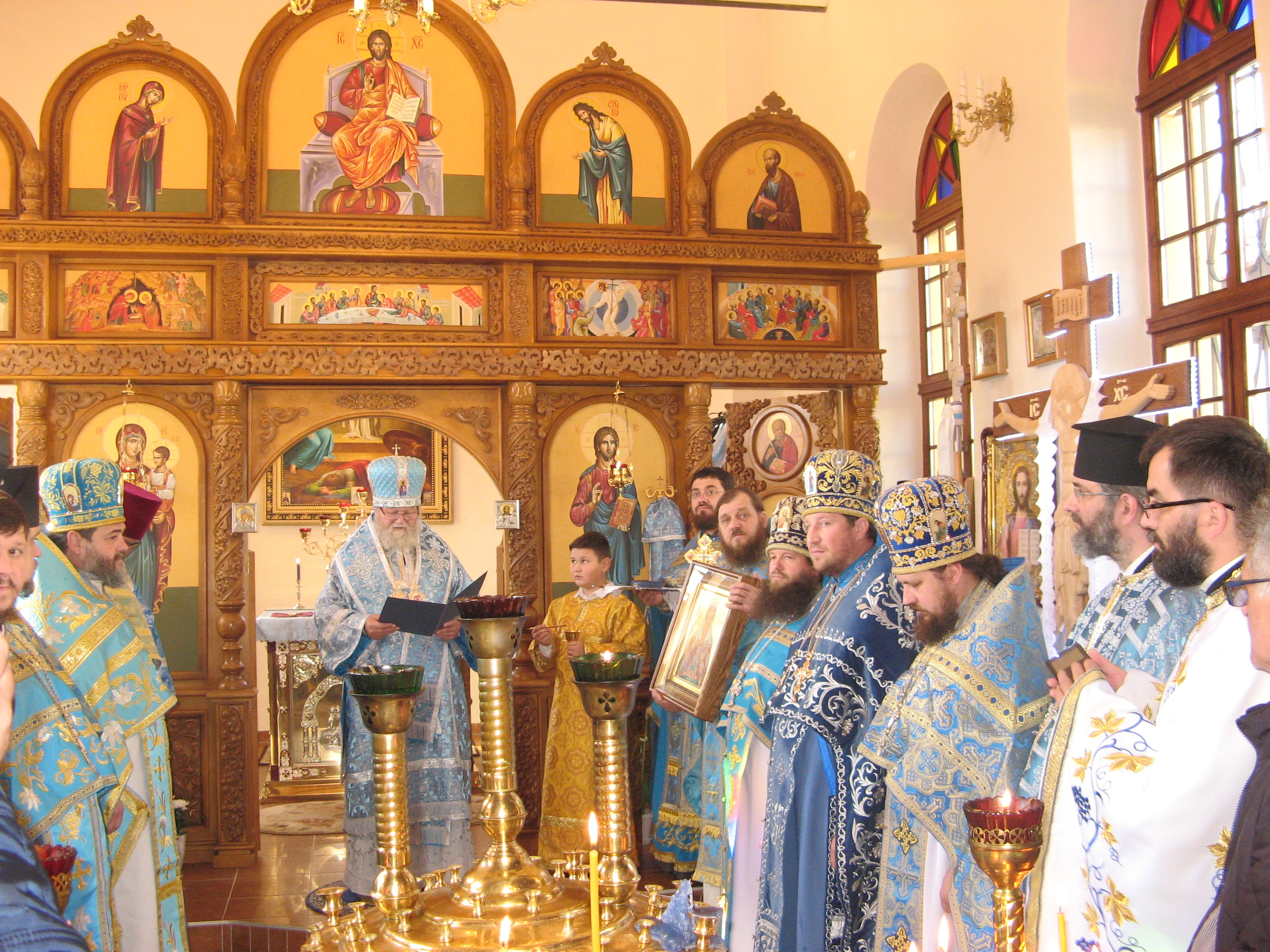 Uroczystości modlitewne poprowadził Jego Ekscelencja Najprzewielebniejszy Michał Arcybiskup Praski i Ziem Czeskich w asyście 16 duchownych. Przed liturgią świętą Władyka dokonał poświęcenia nowego ikonostasu. Homilię świąteczną wygłosił zaproszony gość ks. prot. Marek Bonifatiuk ze Zgorzelca. Podczas nabożeństwa śpiewał chór parafialny. Obok tradycyjnych melodii cerkiewnych dało się usłyszeć charakterystyczne melodie tzw. Irmologionu Mukaczewskiego, które do dziś są używane w cerkwiach na Zakarpaciu i Wschodniej Słowacji.