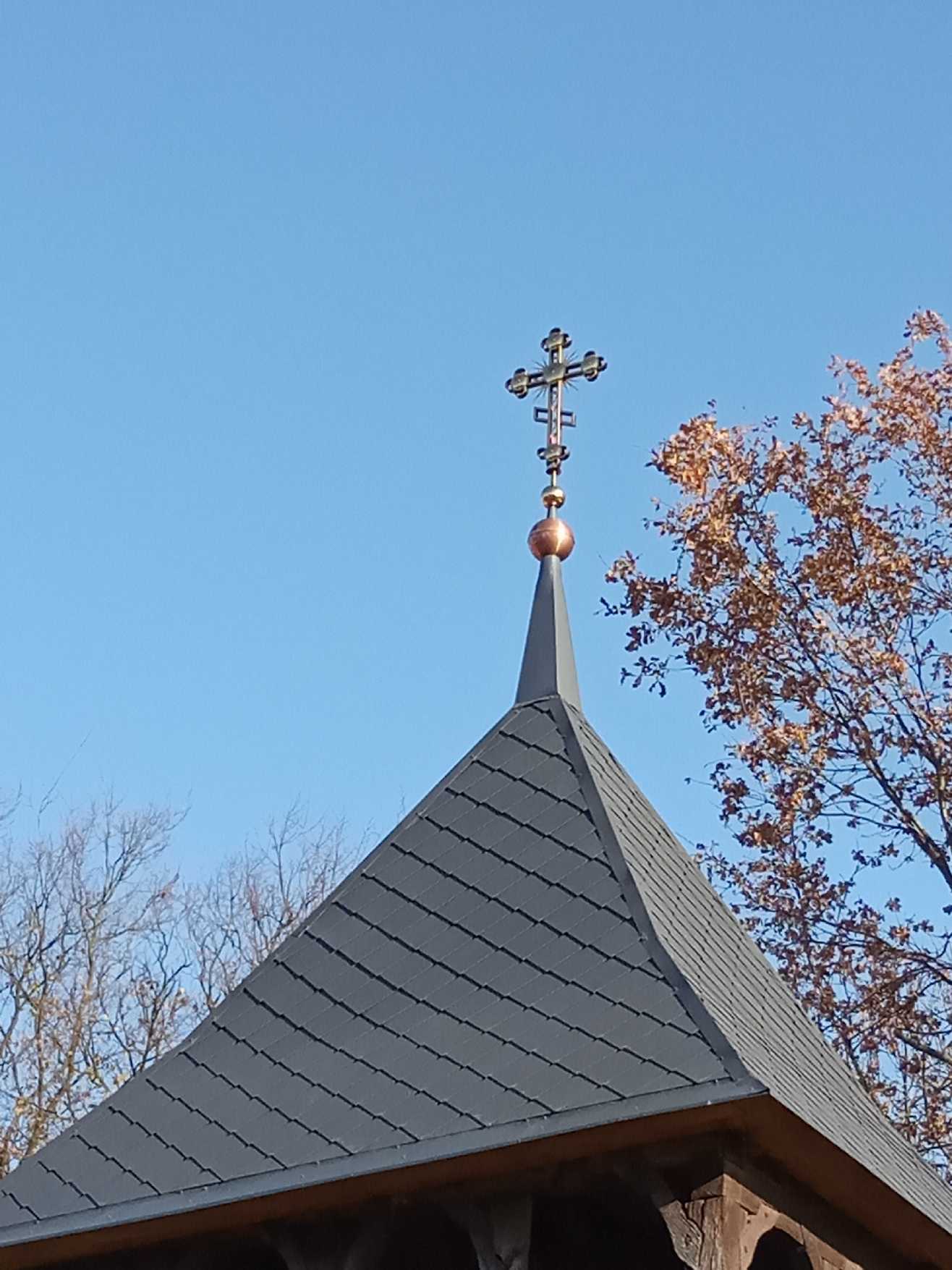 Wykonano jedną z najważniejszych prac zabezpieczających obiekt dzwonnicy – kapitalny remont dachu. W trakcie prac rozbiórkowych okazało się, że nie da się zachować starej więźby dachowej. Trzeba było wymienić 90% z całości. Bardzo trudno było znaleźć wykonawcę. Nie każdy może wykonywać tego typu prace konserwatorskie przy obiektach zabytkowych. Z pięciu zgłaszających się firm, ostatnia okazała się tą, na którą czekaliśmy. Dlatego prace remontowe rozpoczęły się dopiero na początku października. Nie sprzyjała też i pogoda. Piękne, ciepłe wrześniowe dni się skończyły, a za nimi przyszły deszczowe i chłodne dni października. Ale to wcale nie zniechęciło wykonawcy i jego pracowników do prowadzenia intensywnych prac rozbiórkowych i naprawczych. Usunięto wszystkie uszkodzone przez czas i biologiczny czynnik elementy drewniane z jednoczesną zamianą na nowe, zabezpieczone i zakonserwowane drewno. Kiedy dotarły zamówione elementy blachy, podbitka była już na ukończeniu. Stopniowo zaczęła się ukazywać cała bryła dachu pokryta blachą w karo. Żeby nie popaść w euforię, zaczęły się niespodzianki. Zamówiona blacha dotarła do nas jedynie w 50%. Prawie dwa tygodnie zostaliśmy zdani na przymusową przerwę. A kolejny tydzień został utracony na profesjonalne konsultacje. Dopiero zwieńczenie starej dzwonnicy ażurowym, sześcioramiennym metalowym krzyżem spowodowało, że u wszystkich pojawiła się wielka ulga i przeświadczenie, że roboty zostaną ukończone w wyznaczonym terminie.