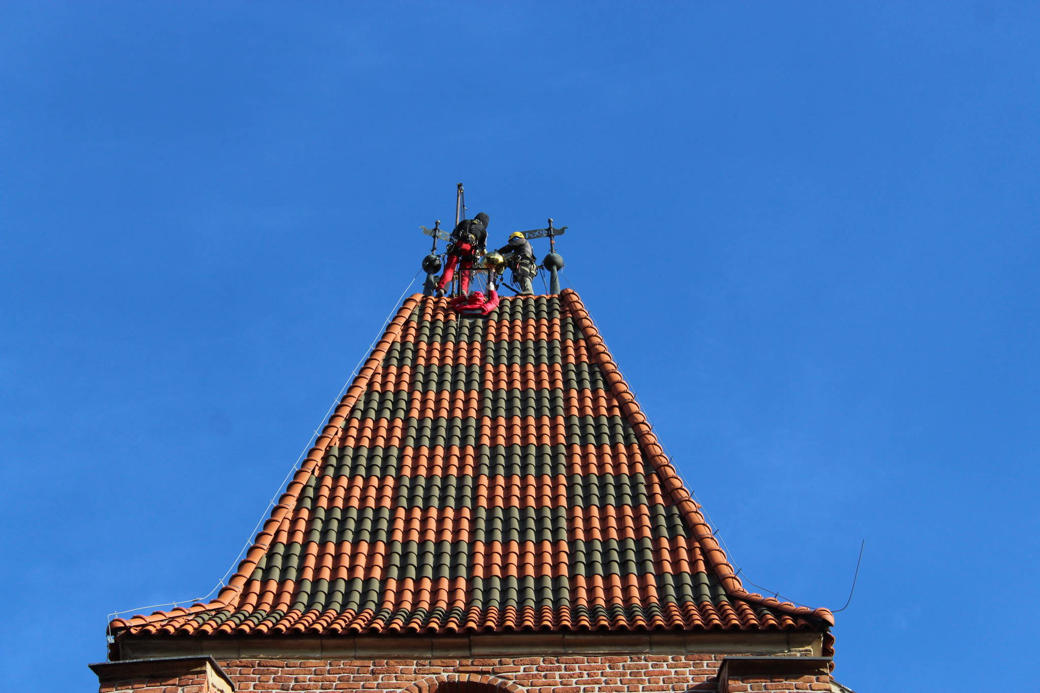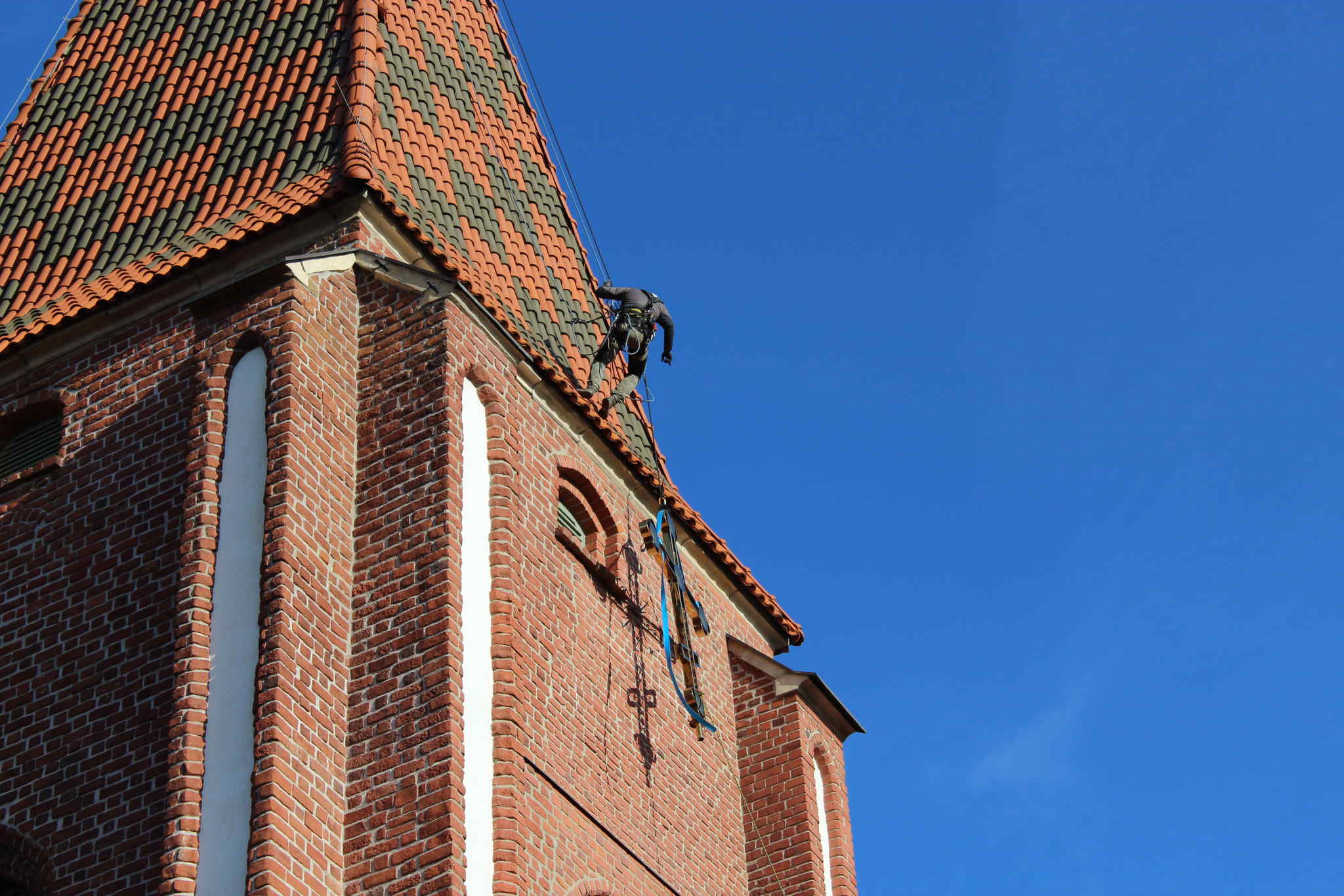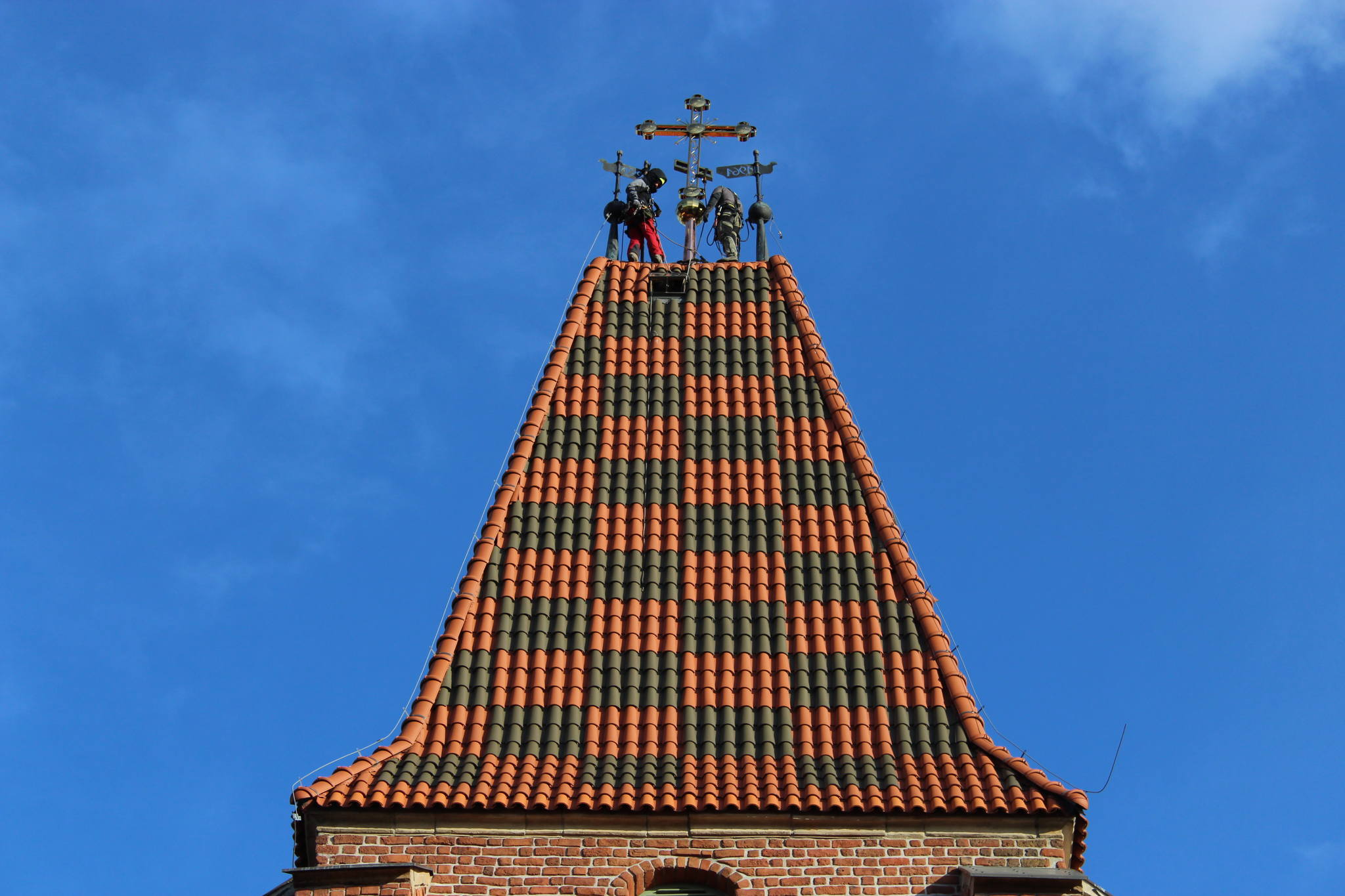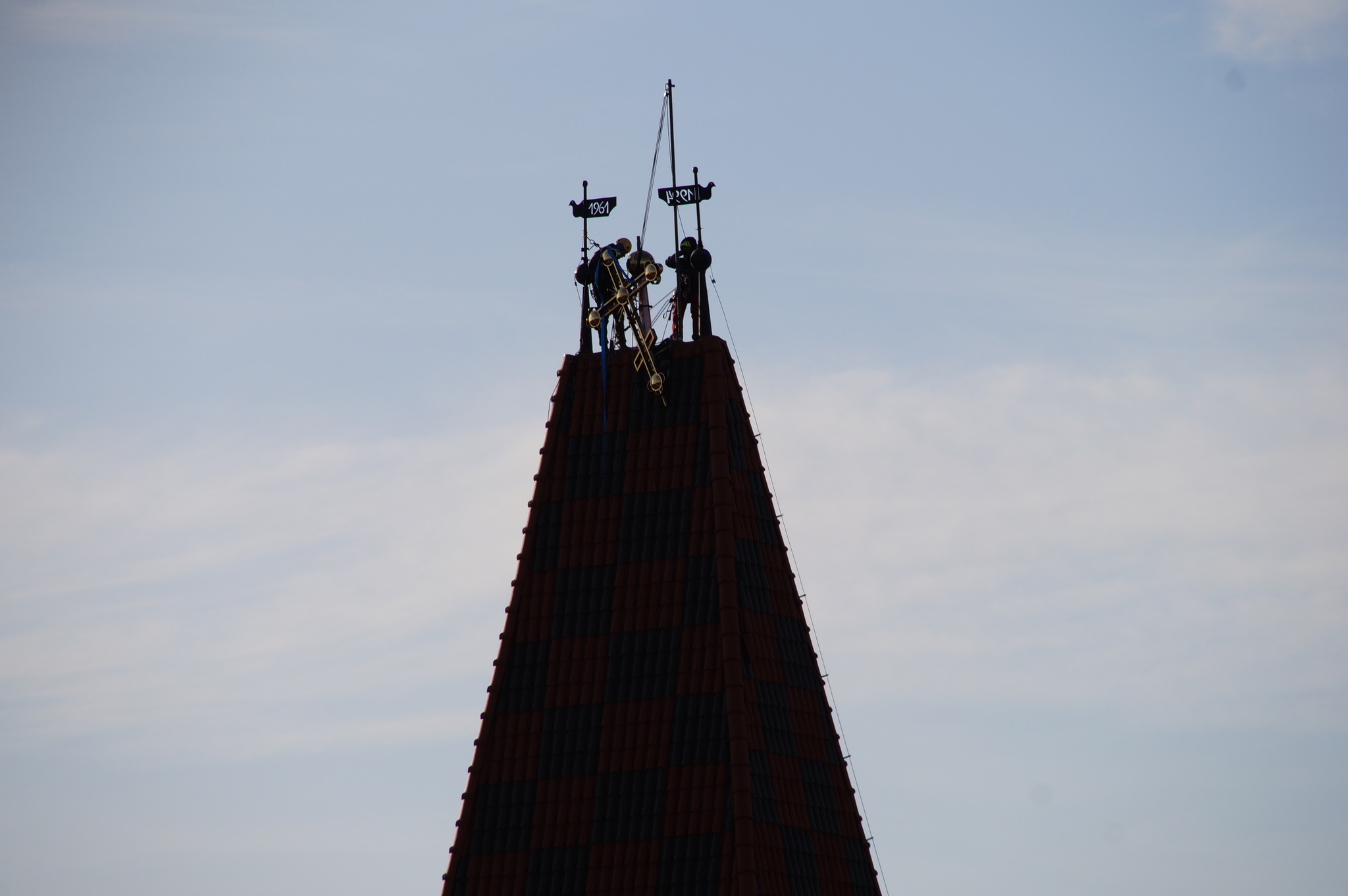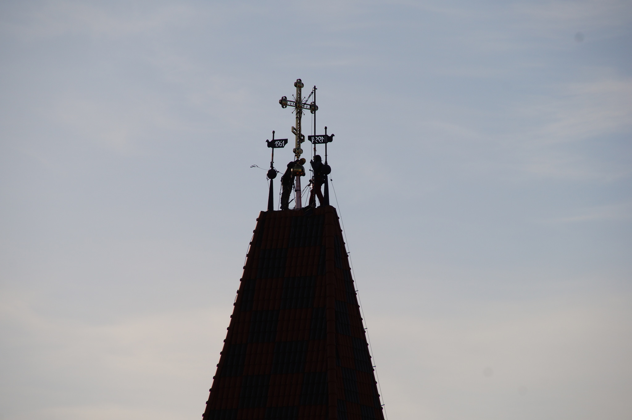 Dzięki staraniom proboszcza ks. mitrata Jerzego Szczura, po pokonaniu wielu problemów formalnych i konstruktorskich krzyż został umieszczony przez alpinistów na szczycie wieży.