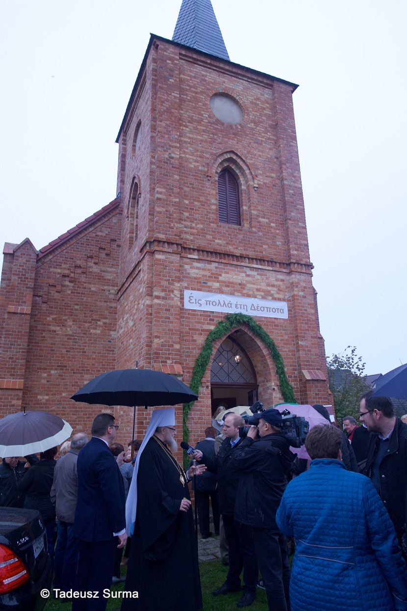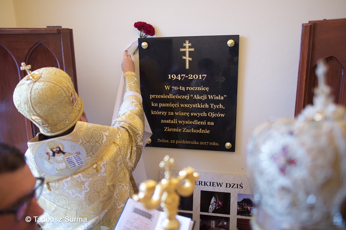 W homilii zwierzchnik polskiego Kościoła prawosławnego przypomniał tragiczne w skutkach lata wysiedleńczej akcji Wisła: „Stoi przed Wami świadek i uczestnik tych tragicznych wydarzeń, chołmszczak” – powiedział metropolita. Były to słowa, które ścisnęły za serce i wywołały wzruszenie u wiernych. „Tę trudną historię należy znać” – podkreślił hierarcha z całą mocą. Na pamiątkę 70-ej rocznicy akcji „Wisła” odsłonięto tablicę, upamiętniającą wszystkich, którzy ucierpieli na skutek tych tragicznych wydarzeń. Podczas św. Liturgii ks. Jarosław Biryłko został podniesiony do godności protojereja, jak również odznaczony Orderem św. Równej Apostołom Marii Magdaleny II stopnia. Metropolita Sawa zaznaczył wielki wkład księdza proboszcza w podtrzymanie tradycji i kultury prawosławnej na ziemiach zachodnich, natomiast arcybiskup Jerzy podkreślił zaangażowanie ks. Jarosława i życzył dalszych sukcesów na chwałę Bożą. Podziękował również Jego Eminencji za ojcowskie wsparcie tego dnia, a wszystkim zebranym za obecność, wyrażając zadowolenie z tak ciepłej i otwartej postawy wobec Kościoła prawosławnego.