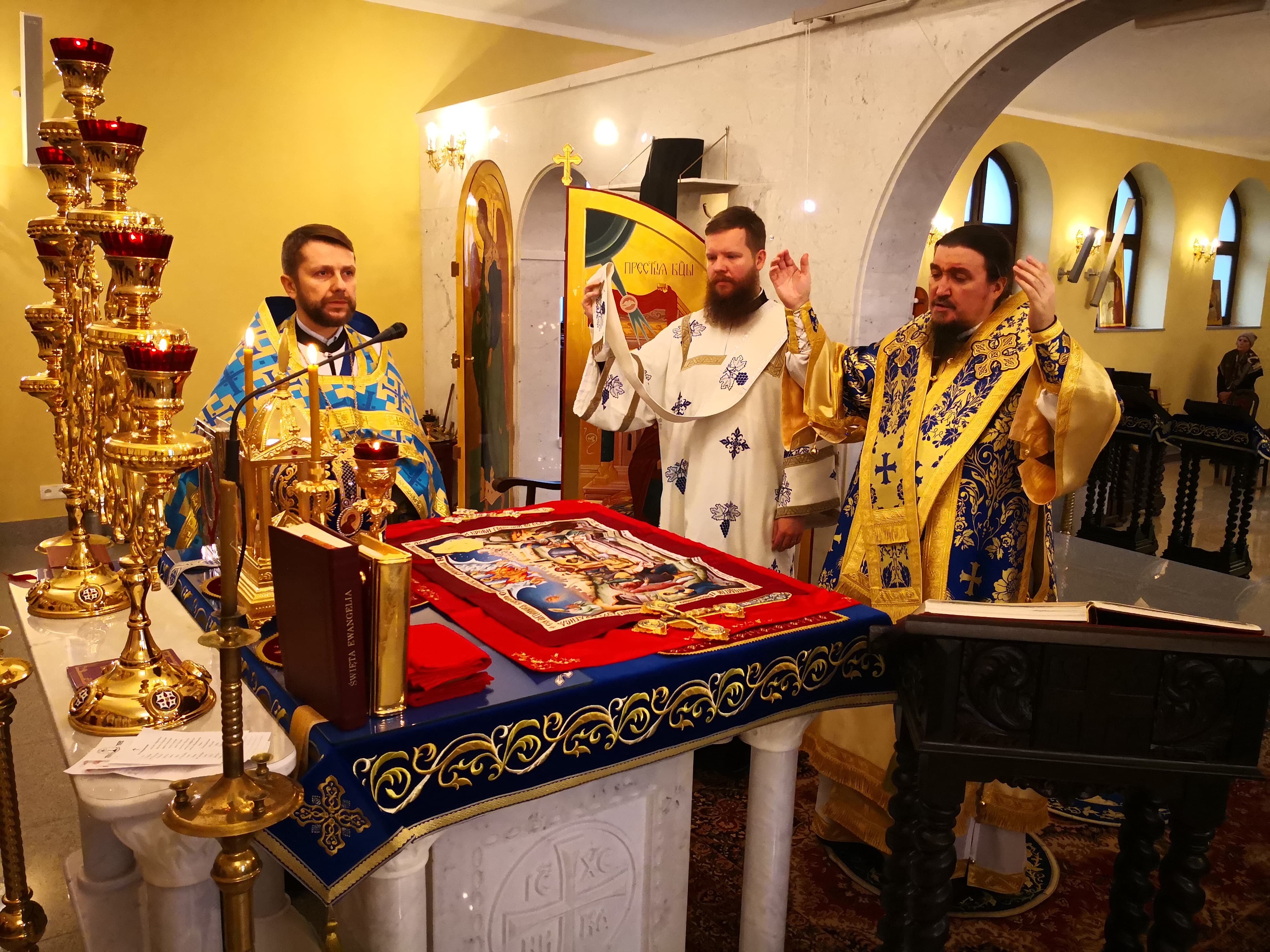 Świąteczne uroczystości rozpoczęły się w przeddzień święta całonocnym czuwaniem. Podczas Boskiej Liturgii Władyce asystowali ks. prot. Tomasz Rubczewski, ks. kpt. Tomasz Paszko oraz diakon Michał Moczarski.