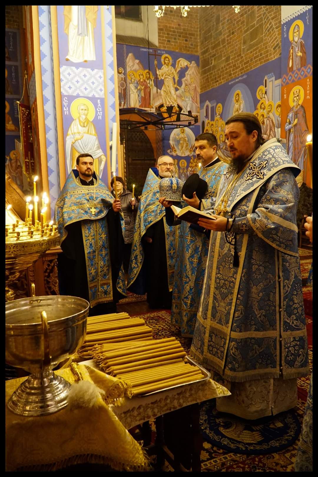 Podczas polieleju zabrzmiał fragment Ewangelii według św. Łukasza opisujący wydarzenie obchodzone w kalendarzu liturgicznym jako święto Spotkania Pańskiego: „A żył w Jerozolimie człowiek, imieniem Symeon. Był to człowiek prawy i pobożny, wyczekiwał pociechy Izraela, a Duch Święty spoczywał na nim. Jemu Duch Święty objawił, że nie ujrzy śmierci, aż zobaczy Mesjasza Pańskiego. Za natchnieniem więc Ducha przyszedł do świątyni. A gdy Rodzice wnosili Dzieciątko Jezus, aby postąpić z Nim według zwyczaju Prawa, on wziął Je w objęcia, błogosławił Boga i mówił: Teraz, o Władco, pozwól odejść słudze Twemu w pokoju, według Twojego słowa. Bo moje oczy ujrzały Twoje zbawienie, któreś przygotował wobec wszystkich narodów: światło na oświecenie pogan i chwałę ludu Twego, Izraela” (Łk 2,25-32).