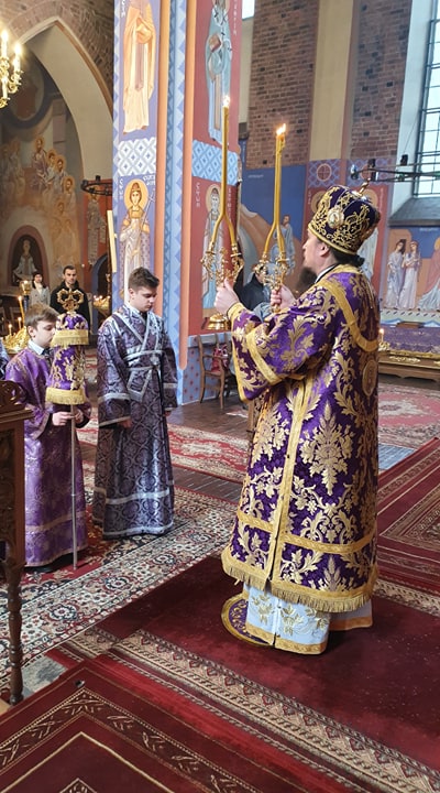 Wieczorem Jego Ekscelencja Władyka Jerzy przewodniczył nabożeństwu III Pasji - Wielkopostnej wieczerni z czytaniem Ewangelii o Męce Pańskiej.