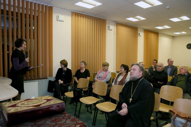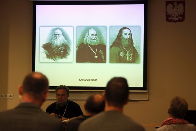 W wystąpieniu gościa dały się zauważyć trzy wątki tematyczne. W pierwszym przedstawił sytuację kapelanów w wojsku carskim, osadzając ją w historii Rosji i przywołując dekrety carskie, które miały wpływ na rolę duchownych w armii. Podkreślił, że posłudze duchownych towarzyszyło duże uznanie społeczne, a kapelani wywierali znaczący wpływ na życie wojska. Ścisły związek religii i armii w ówczesnej Rosji przetrwał aż do wybuchu rewolucji październikowej, która nie tylko zmieniła ustrój i władzę, ale także oznaczała kres roli cerkwi. Co do zabytkowego Ewangeliarza, jego ciekawą historię przedstawił ks. Cebulski w kontekście dziejów obozu jenieckiego, funkcjonującego w Nysie w latach I wojny światowej oraz losów oficerów rosyjskich w nim przetrzymywanych. Zaprezentowane zdjęcia pozwoliły uczestnikom wyobrazić sobie jak wyglądał sam obóz i kaplica, do której trafiła księga. Stało się to za sprawą przedstawicielki Rosyjskiego Czerwonego Krzyża, która zadbała o to by Ewangeliarz dotarł do adresatów. Wiele uwagi ks. Grzegorz Cebulski poświęcił także posłudze kapłańskiej sprawowanej w obozie najprawdopodobniej przez dwóch duchownych prawosławnych. Warto przy okazji odnotować, że w wystąpieniu gość odwoływał się parokrotnie do artykułu naszego kolegi dra Piotra Stanka pt. „Obóz jeniecki w Neisse (Nysa) w latach 1914–1918”, który został opublikowany w 36 tomie „Łambinowickiego Rocznika Muzealnego”. Swoją prelekcję gość zamknął rozważaniami na temat liturgii w kościele prawosławnym, która odbiega znacznie od katolickiej. Podkreślił także bogactwo sztuki sakralnej oraz zwracającą uwagę oprawę wnętrza świątyń prawosławnych i przedmiotów liturgicznych. W tym kontekście Ewangeliarz, który był głównym tematem spotkania, w materialnym wymiarze nie należy do najcenniejszych. To stwierdzenie nie umniejsza oczywiście znaczenia daru, który – jak zauważył ks. Cebulski.– był wybitnym przejawem troski ówczesnych ludzi o to, co w życiu najważniejsze: słowa prawdy i wewnętrznej wolności człowieka.”