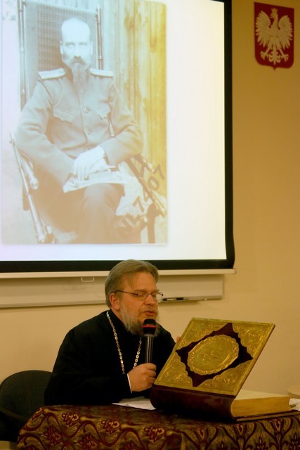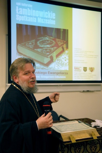 “Tegoroczny cykl „Łambinowickich Spotkań Muzealnych” zakończył się niezwykle interesującym wydarzeniem. Zarówno osoba gościa – prawosławnego duchownego i chórmistrza, a także tematyka – stuletni Ewangeliarz – zapowiadały się ciekawie, zatem nie dziwi, że spotkanie dostarczyło uczestnikom wielu wrażeń. Było także okazją do poszerzenia wiedzy w tym obszarze. Wróćmy zatem do głównego wątku naszej relacji. W środowy wieczór w Muzeum w Łambinowicach gościliśmy ks. protojereja Grzegorza Cebulskiego, który przywiózł na spotkanie bardzo ważne dla nas dzieło literatury sakralnej.
