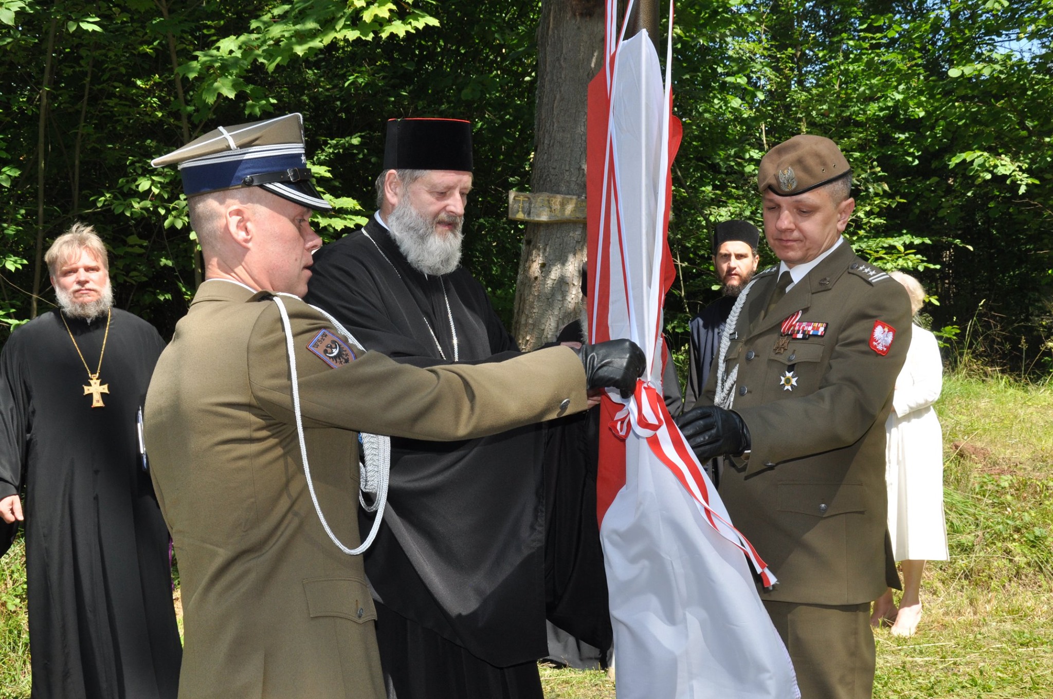 Po wysłuchaniu przemówienia i laudacji, odbyło się odsłonięcie pamiątkowej tablicy, którego dokonali trzej najwyżsi rangą oficerowie WP. Modlitwę żałobną wspominającą pomordowanych i poległych za Ojczyznę, wygłosił ks. mitrat Eugeniusz Cebulski, następnie złożono kwiaty. Zgromadzeni odwiedzili cerkiew św. Archanioła Michała, po czym zostali ugoszczeni obiadem przez Państwa Andreja i Ludmiłę Wowków, prowadzących Dom św. męcz. Elżbiety Fiodorownej.