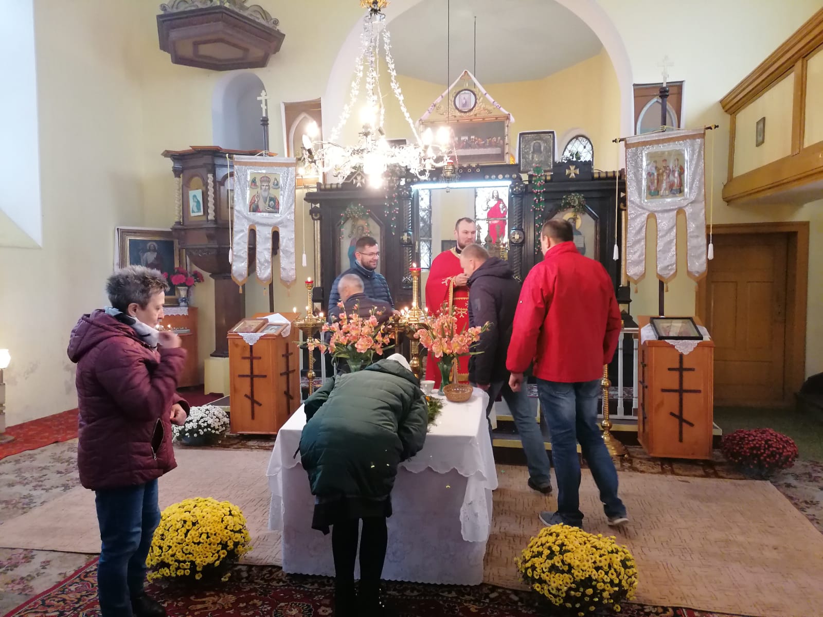 W słowie skierowanym do wiernych ks. Habura zwrócił uwagę na to, co łączy wszystkich chrześcijan ze św. Dymitrem. Greckie słowo męczennik- μάρτυς (mártus) oznacza dosłownie “świadka”, a więc tego kto swoim życiem świadczy o tym, że jest uczniem Chrystusa. Świadkiem - dającym świadectwo swoją postawą można być na wiele sposobów. Jednym z nich jest trwanie, pomimo wszelkich przeciwności, przy Chrystusie. Taka postawa jest szczególnie mocno widoczna w małych parafiach, jak chociażby Wołów. Często zdarza się, że społeczność wiernych czuje się zasmucona tym, że parafia jest nieliczna, że boryka się z problemami. Należy jednak koniecznie pamiętać o tym, że pomimo kłopotów, niedostatków, małej ilości wiernych i wszelkich innych przeciwności, ta parafia trwa w wierze - daje świadectwo. Nasza diecezja widziała już wiele parafii, które były na skraju zamknięcia, a jednak dzięki świadectwu wiary odrodziły się i istnieją do dziś. Gdyby nie wytrwałość wiernych, gdyby nie ich świadectwo i poświęcenie, w tych miejscowościach nie rozbrzmiewałby już dziś dźwięk prawosławnej modlitwy. Wielkim dziełem jest zbudować Cerkiew, ale równie wielkim, jeśli nie nawet większym, jest nie dopuścić, aby ta Cerkiew przestała istnieć. To jest właśnie świadectwo - trwanie w wierze pomimo przeciwności, które łączy nas ze św. Dymitrem, a co szczególnie mocno widać i czuć w Starym Wołowie.